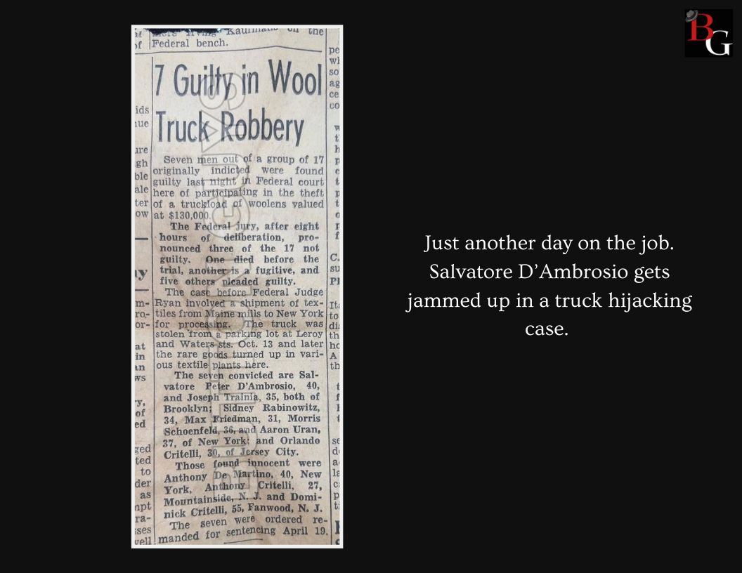 Just another day on the job..Salvatore D’Ambrosio gets jammed up in a truck hijacking case.